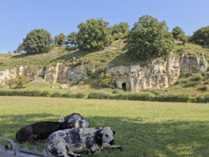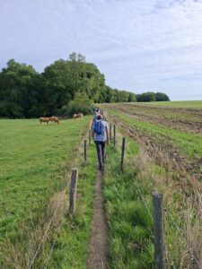 Vandaag maken we een wandeling naar Meersen. Toevallig zijn we daar een paar jaar geleden op vakantie geweest, dus kwam de wandeling op sommige plekken bekend voor. We lopen Bergen uit en komen al vrij snel bij de Curfsgroeve, waar een oude mergel afgraving is. Als we de Hagenstraat uitlopen, hebben we een mooi uitzicht over Maastricht. Via mooi veld en bospaden komen we in Meersen. Op de markt is de eerste pauze. Na een kop koffie gaan we de lus lopen naar Ulestraten. In de route zitten een paar venijnige hellingen. We lopen door een mooi bos en uiteindelijk komen we weer terug in Meersen voor de tweede pauze. Ook in het laatste stuk moet er flink geklommen worden.