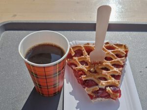 Het is alweer de laatste dag van de heuvelland 4-daagse. Naar Cadier en Keer lopen we langs de Bemelerberg. Gelukkig er niet overheen. Er is niet heel veel te zien onderweg. Al gauw zijn we bij de eerste koffie pauze. Daarna gaat de tocht door Honthem, wat een klein dorpje is met een paar huizen. Op de terugweg komen we weer bij Cadier en Keer voor de tweede pauze. Ik heb nog bonnen over, dus trakteer ik me eigen op een lekkere Limburgse vlaai met kersen. Op terugweg komen we nog langs enkele groeve. Na Bemelen gaan toch nog de Bemelerberg op. Dat is een taai stuk met een flinke klim. Als we de rijksweg bij Bergen passeren zie je het feestterrein al liggen. Maar helaas, we moeten eerst nog om het dorp lopen voordat we er zijn. Vlak bij de finish staat Marion te wachten. Ik ben blij dat ik haar zie. Samen lopen we naar de feesttent om me af te melden. Er is helaas geen medaille of een herinnering, die had ik eerst moeten bestellen.